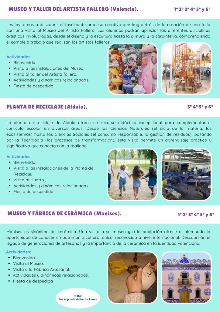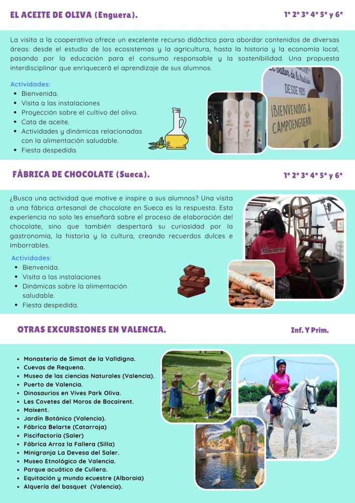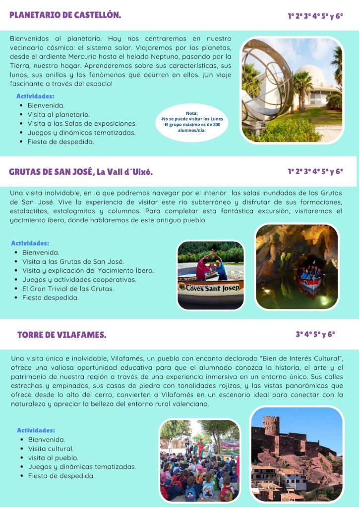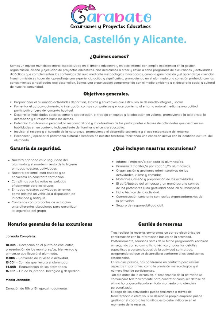 CATÁLOGO DE EXCURSIONES VALENCIA,CASTELLÓN Y ALICANTE CONTACTA CON NOSOTROS ← VolverGracias por tu respuesta. ✨ Nombre(obligatorio) Correo electrónico(obligatorio) Mensaje ContáctanosEnviando formulario Δ Comparte esto: Comparte en Facebook (Se abre en una ventana nueva) Facebook Compartir en WhatsApp (Se abre en una ventana nueva) WhatsApp Más Compartir en X (Se abre en una ventana nueva) X Me gusta Cargando...